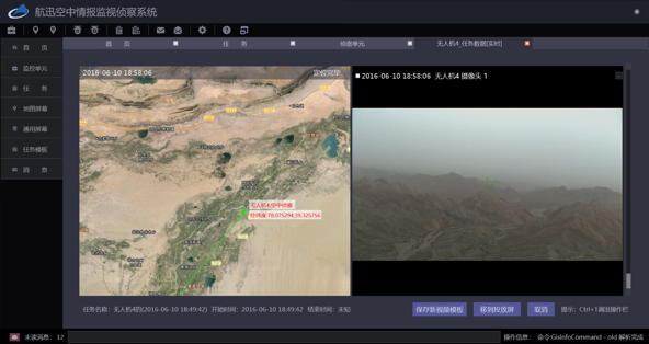 航迅空中情报监视侦察系统是以航迅空地无线宽带通信网络产品为基础,依托各类飞行平台,满足在多天候、多地形、跨昼夜、跨地域条件下,实现空对地高清视频监视、目标检测跟踪及其他情报收集,且将情报数据实时回传地面指挥中心,进行可视化展示的空中侦察系统。